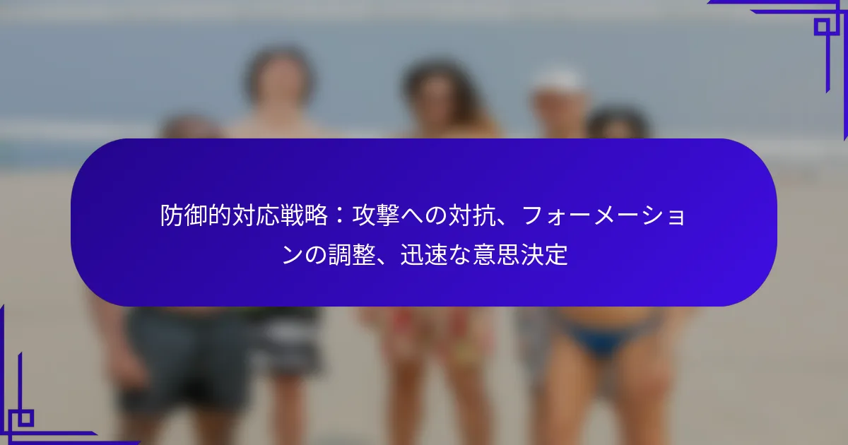 防御的な対応戦略は、脅威を効果的に管理し、競争環境でのコントロールを維持するために不可欠です。攻撃に対抗し、フォーメーションを調整し、迅速な意思決定を可能にすることに焦点を当てることで、これらの戦略はチームが動的な課題に巧みに対応できるようにします。成功した実施には、明確なコミュニケーションと現在の状況に対する鋭い理解が必要です。