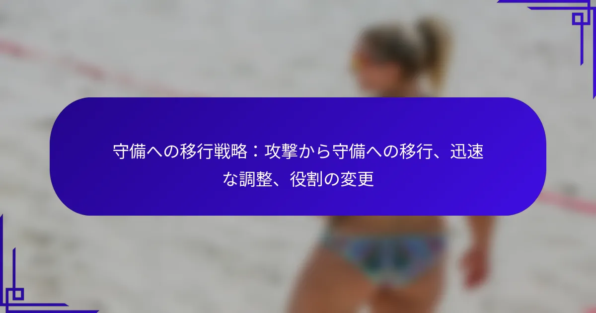 ディフェンシブトランジション戦略とは、ゲームプレイ中にチームが攻撃的な姿勢から防御的な姿勢に迅速に移行するために採用する方法や戦術を指します。これらの戦略は、コントロールを維持し、相手に得点機会を最小限に抑えるために重要です。