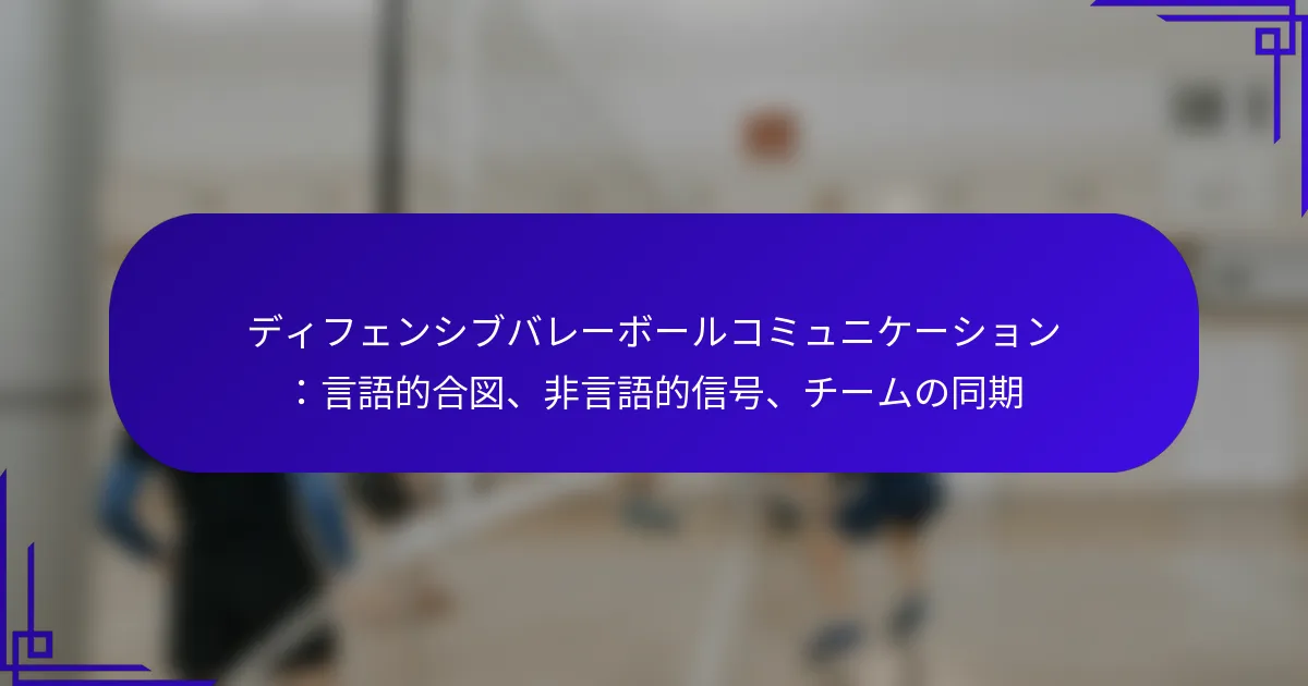 ディフェンシブバレーボールコミュニケーションにおける効果的な言葉の合図は、チームの動きや戦略を調整するために不可欠です。これらの合図は、選手がプレイを予測し、同期を高め、チーム内の信頼を築くのに役立ちます。