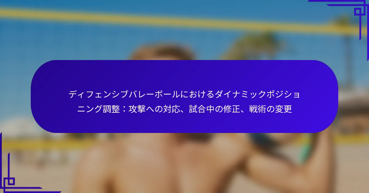 ディフェンシブバレーボールにおけるダイナミックポジショニングの調整とは、選手が相手の攻撃に効果的に応じるためにリアルタイムで行うポジショニングの変更を指します。これらの調整は、ディフェンシブ能力を向上させ、チームがさまざまな攻撃戦略に効率的に対抗できるようにするために重要です。