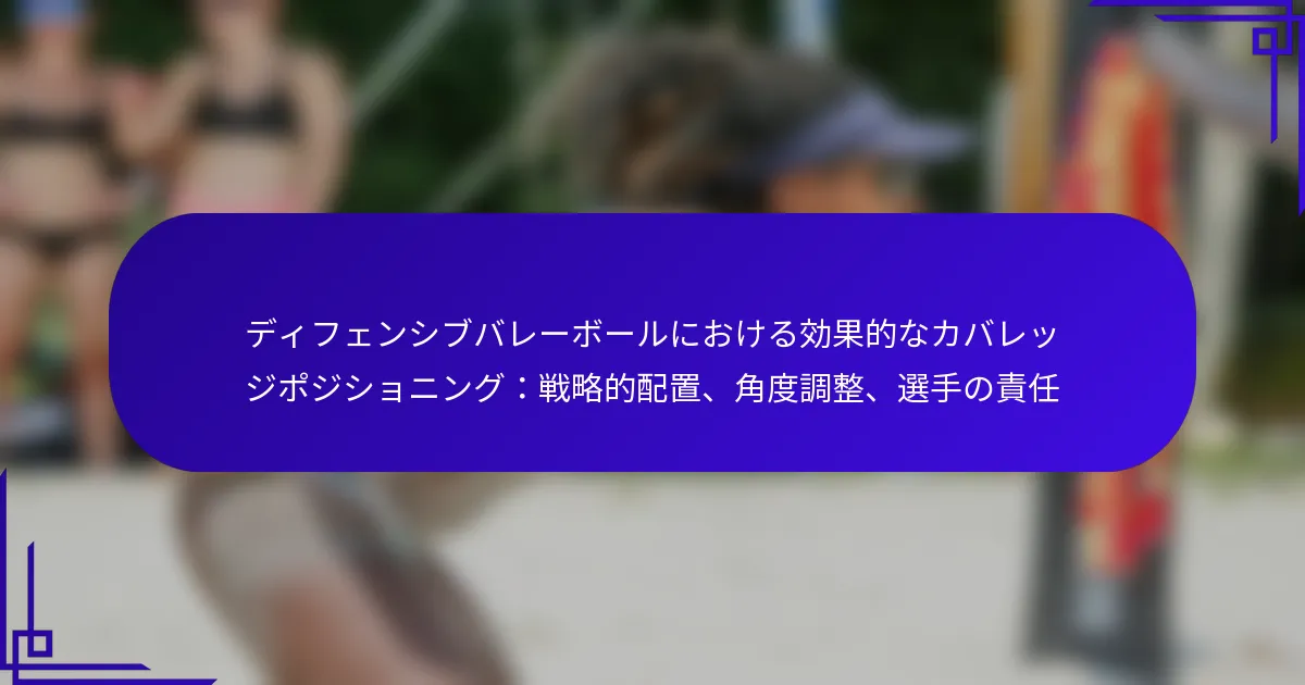 ディフェンシブバレーボールにおける効果的なカバーポジショニングは、チームの防御能力を最大限に引き出すために不可欠です。戦略的な配置、角度調整、明確に定義された選手の役割に焦点を当てることで、チームは相手の攻撃に対する反応を大幅に改善できます。これらの要素を理解することで、選手は動きを予測し、コート上での防御戦略を最適化することができます。