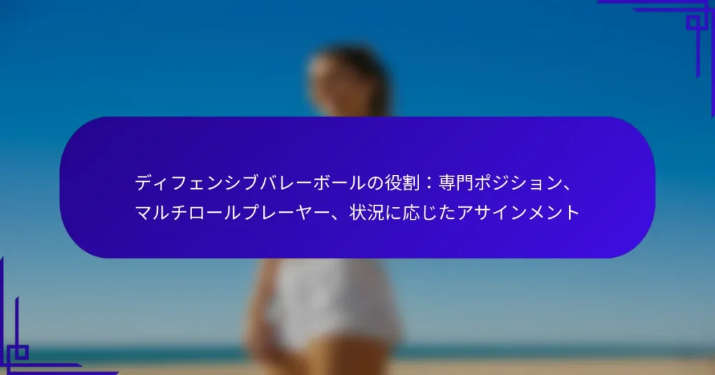 バレーボールにおいて、守備の役割は効果的なボールコントロールと戦略的なプレーを維持するために重要であり、主にリベロやディフェンシブスペシャリストといった専門的なポジションによって表現されます。マルチロールプレーヤーは守備に柔軟性を加え、チームがさまざまな試合状況に適応できるようにします。さらに、状況に応じた任務により、コーチは相手の強みに基づいて選手の責任を調整し、全体的なチームパフォーマンスとレジリエンスを向上させることができます。 バレーボールにおける専門的な守備ポジションとは? バレーボールにおける専門的な守備ポジションには主にリベロとディフェンシブスペシャリストが含まれます。これらの役割は、試合中の効果的なボールコントロールと戦略的なプレーを確保し、チームの守備能力を向上させることに焦点を当てています。 リベロの定義と役割 リベロは異なる色のジャージを着用し、ネットの高さを超えてボールを攻撃することができない専門的な守備選手です。このポジションは、チームのレセプションと守備を改善し、より良いボールコントロールと戦略的なプレーを可能にするために重要です。 リベロ選手は通常、敏捷性がありパス技術に優れているため、サーブを受けたり相手の攻撃を掘り返したりする際に不可欠です。彼らは試合中に交代してもチームの交代制限にカウントされず、守備戦略に柔軟性を提供します。 ディフェンシブスペシャリストの責任 ディフェンシブスペシャリストは、リベロと似た特定の守備タスクに焦点を当てますが、同じ制限はありません。彼らの主な責任は、特にサーブレシーブや攻撃の掘り返しにおいてチームの守備を強化することです。 相手からのサーブやパスを受ける。 相手選手のスパイクや攻撃を掘り返す。 チームメイトと効果的にコミュニケーションを取り、守備プレーを調整する。 ディフェンシブスペシャリストは、特定の状況でサーブを行うこともあり、試合の重要な瞬間に戦術的な利点を提供します。彼らの役割は、コート上でのチームの士気と結束を維持するために重要です。 専門的なポジションに必要な主要スキル 専門的な守備役割の選手は、優れたパフォーマンスを発揮するために独自のスキルセットを持っている必要があります。主要なスキルには、優れたボールコントロール、迅速な反応、強力なコミュニケーション能力が含まれます。 ボールコントロール:パスとレシーブの習得が不可欠です。 敏捷性:迅速な動きとポジショニングが効果的な掘り返しに重要です。 コミュニケーション:明確で簡潔なコミュニケーションが守備の努力を調整します。 さらに、ゲームの理解が深く、相手のプレーを読み取る能力が守備選手のコート上での効果を大幅に向上させます。 専門的な役割がチーム戦略に与える影響 専門的な守備役割は、チームの全体的な戦略に大きな影響を与えます。リベロやディフェンシブスペシャリストのような専任の選手を持つことで、チームは守備能力を強化し、他の選手が攻撃プレーに集中できるようになります。 この役割の分担は、重要な試合状況でのパフォーマンス向上につながる可能性があり、専門的な選手は相手の戦略をより効果的に予測し反応できます。チームはしばしばディフェンシブスペシャリストの強みに基づいてフォーメーションやプレーを調整し、より一体感のあるユニットを作り出します。 守備ポジションに関する一般的な誤解 バレーボールの守備ポジション、特にリベロやディフェンシブスペシャリストに関しては多くの誤解があります。一般的な神話の一つは、これらの役割が攻撃ポジションよりも重要ではないということですが、強力な守備は試合に勝つために不可欠です。 もう一つの誤解は、リベロがサーブを受けることだけに責任があるということです。実際には、彼らの役割は掘り返しやプレーのセットアップを含む、より広範な守備タスクを含んでいます。これらの役割を理解することで、選手やコーチはバレーボールにおける守備の戦略的重要性をよりよく理解できるようになります。 マルチロールプレーヤーは守備戦略にどのように貢献するか? マルチロールプレーヤーは、コート上での柔軟性と適応性を提供することで守備戦略を強化します。異なるポジション間を切り替える能力により、チームはさまざまな試合状況に効果的に対応し、全体的なパフォーマンスとレジリエンスを向上させます。 バレーボールにおけるマルチロールプレーヤーの定義 バレーボールにおけるマルチロールプレーヤーは、特に守備役割において、複数のポジションで効果的にパフォーマンスを発揮できる選手です。この柔軟性により、掘り返し、パス、さらにはセットアップなど、試合の流れに適応できます。複数のスキルを習得することで、これらの選手は必要に応じてギャップを埋め、試合全体を通じてチームが競争力を維持できるよう