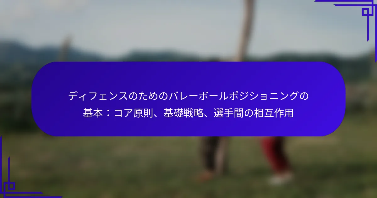 バレーボールの守備位置の核心原則は、効果的なコミュニケーション、相手の戦略を理解すること、プレーを予測することに焦点を当てています。これらの要素は、さまざまな攻撃スタイルや選手の傾向に適応できる一貫したディフェンスを作り出すために不可欠です。